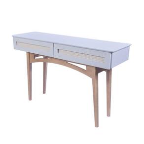 Este elegante aparador une funcionalidade e estilo em um design contemporâneo com toque retrô. Com estrutura superior em tom suave e delicado, ele conta com duas gavetas amplas que trazem frente com acabamento em rattan natural, um charme à parte que agrega textura e leveza à peça. Os pés alongados em madeira clara com design arqueado oferecem estabilidade e um visual sofisticado, ideal para compor ambientes como hall de entrada, sala de estar ou quarto.