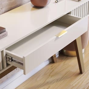 Aparador Rivieira, uma ótima solução para compor ambientes de sala de estar, salas de jantar, hall de entrada ou até mesmo servir como divisor de ambientes. Estrutura em MDP de 15 e 25 mm, que proporcionam melhor acabamento nas bordas e superfícies, contando com pintura em acabamento UV (Brilho). Composto por tampo espaçoso que pode ser usado para decorações, possibilitando a disposição de taças, bebidas e demais objetos, ripas decorativas em suas laterais, gaveta multiuso com corrediças telescópicas, puxador, pés em Madeira Maciça, e acompanham sapatas plásticas para proteger contra umidade do piso. Este móvel chegará na sua casa separado em 01 volume.