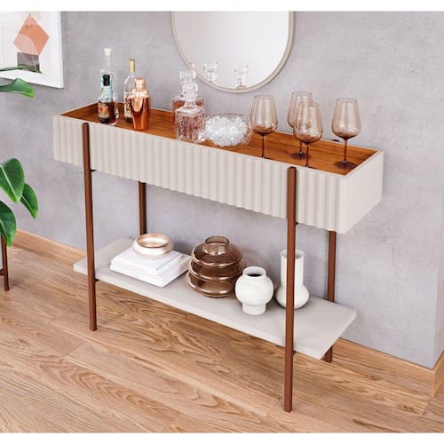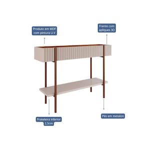 Aparador Lira Cimol.Sofistique o ambiente com o Aparador da Cimol,um excelente móvel para modernizar o seu lar, esse produto segue as tendencias do mercado reunindo requinte e estilo. Sua base em em metalon agrega um charme maior ao produto. Acabamento: Pintura UV Acabamento da Prateleira: Pintura UV Ambiente Principal: Sala de Jantar Complexidade da Montagem: Média: pode ser montado por mais de uma pessoa e/ou necessite de maior conhecimento para montagem Cor: Off White/Cinamomo Cor do Produto: Off White/Cinamomo Cor Flex: Não Cor Interna: Off White/Cinamomo Escala de Brilho: Semi-Brilho Escala de Brilho da Prateleira: Semi-Brilho Itens Inclusos: 1 Aparador, Kit Ferragens e Manual de Montagem Manual de Montagem e Instalação: https://cdn2.madeiramadeira.com.br/atributo/cimol/1692462-esquema-de-montagem-aparador-lira.pdf Material da Prateleira: MDF Material dos Pés: Metal Material Principal: MDF Montagem Flex: Não Necessita Montagem: Sim Origem do Produto: Nacional Peso: 20.38 Peso Máximo por Prateleira: 20 Possui Adega: Não Possui Bandeja: Não Possui Possui Espelho: Não Possui Gavetas: Não Possui Nicho: Não Possui Pés: 04 Possui Portas: Não Possui Rodízio: Não Possui Vidro: Não Recomendações de Uso, Manutenção e Limpeza: Para manter seu móvel novo por muito mais tempo, evite locais úmidos, mantenha-o distante de líquidos. Para limpá-lo com segurança utilize uma flanela seca sem produtos abrasivos Sapatas Niveladoras: Sim Sistema de Montagem: Parafusos, porcas, e cavilhas Suporta Até (kg): 50