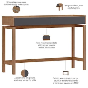 Peso máximo suportado até 5 kg por gaveta, ambos distribuídos.