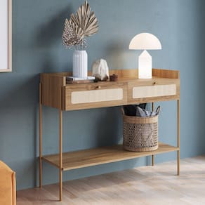 Invista em charme e sofisticação com o Aparador Para Sala 2 Gavetas Indy, da Lyam Decor. Com design escandinavo, inspirado na delicadeza e suavidade da natureza, esse aparador para sala exprime um toque acolhedor, além do traço artesanal representado no aplique de tela sintética nas duas gavetas. Já a robustez dos pés metálicos estilo industrial garante estabilidade e resistência, além de adicionar um elemento contemporâneo cheio de estilo.