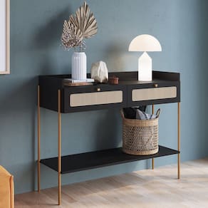 Invista em charme e sofisticação com o Aparador Para Sala 2 Gavetas Indy, da Lyam Decor. Com design escandinavo, inspirado na delicadeza e suavidade da natureza, esse aparador para sala exprime um toque acolhedor, além do traço artesanal representado no aplique de tela sintética nas duas gavetas. Já a robustez dos pés metálicos estilo industrial garante estabilidade e resistência, além de adicionar um elemento contemporâneo cheio de estilo.