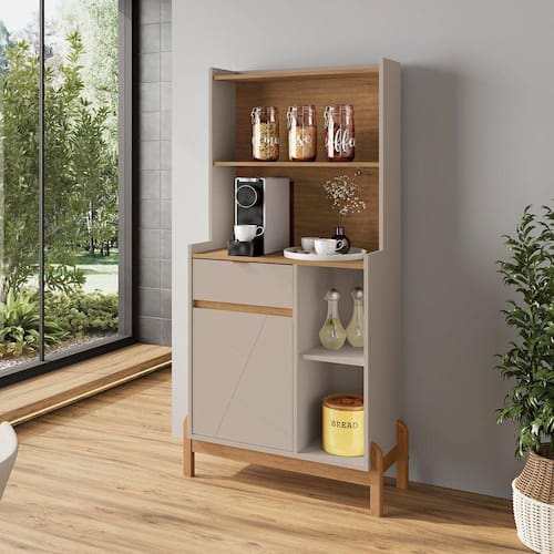 O Cantinho do Café Bari foi desenvolvido para esbanjar elegância, charme e funcionalidade, tornando-se uma peça coringa para todos os ambientes. O móvel possui o tamanho ideal para você dispor os seus itens e organiza-los de maneira eficiente e prática. O móvel possui 1 porta com detalhe usinado e amplo espaço interno, 1 gaveta com puxador de aço pintado, 2 prateleiras organizadoras. Estruturado em MDF/MDP e pintura UV de alta qualidade, o que contribui para a durabilidade e resistência do produto. Com o Cantinho do Café Bari seu café da manhã e da tarde estará muito mais completo, organizado e moderno. Produto Montado: Sim Acabamento: Pintura UV Acabamento da Gaveta: Pintura UV Acabamento da Porta: Pintura UV Acabamento da Prateleira: Pintura UV Acabamento dos Pés: Verniz Altura dos Pés: 25 cm Altura Máxima dos Pés: 25.0000 Ambiente Principal: Sala de Jantar codigo_ean: 7909903617052 Complexidade da Montagem: Baixa: pode ser montado por uma pessoa sozinha Cor: Off White/Cedro Cor do Produto: Off White/Cedro Escala de Brilho: Semi-Brilho Escala de Brilho da Gaveta: Semi-Fosco Escala de Brilho da Porta: Semi-Fosco Escala de Brilho da Prateleira: Semi-Fosco Gaveta com Chave: Não Itens Inclusos: 01 - Cantinho Café Bari ; 01 - Manual de Montagem Detalhado Linha ou Coleção: Bari Manual de Montagem e Instalação: https://product-hub-prd.madeiramadeira.com.br/897492/documents/235405c6-8b82-4a0e-a781-fb9f4a44ddfcrcantinhocafebari404464000.pdf Material da Gaveta: MDF/MDP Material da Porta: MDF Material da Prateleira: MDP Material do Puxador da Gaveta: Metal Material dos Pés: Madeira Maciça Material Principal: MDF/MDP Necessita Montagem: Sim Origem do Produto: Nacional Pés Reguláveis: Não Peso: 30,9 kg Peso Máximo por Gaveta: 5 kg Peso Máximo por Prateleira: 5 kg Possui Adega: Não Possui Espelho: Não Possui Gavetas: Sim Possui Pés: 04 Possui Portas: Sim Possui Prateleiras: Sim Possui Rodízio: Não Possui Vidro: Não Quantidade de Gavetas: 01 Gaveta Quantidade de Portas: 1 Porta Quantidade de Prateleiras: 01 Prateleira Recomendações de Uso, Manutenção e Limpeza: Recomenda-se limpar o produto com flanela ou pano macio seco, não utilizar produtos abrasivos, desengordurantes, álcool ou solvente. Mantê-lo em lugar livre de umidade e/ou exposição direta ao sol. Sapatas Niveladoras: Não Sistema de Montagem: Parafusos, Minifix, Cavilhas e Pregos Suporta Até (kg): 50 kg Tipo de Corrediça da Gaveta: Metálica Telescópica Tipo de Dobradiça/Corrediça da Porta: Metálica Tipo de Madeira Maciça dos Pés: Pinus Tipo de Porta: Bater Tipo de Puxador da Gaveta: Externo Tipo de Puxador da Porta: Embutido