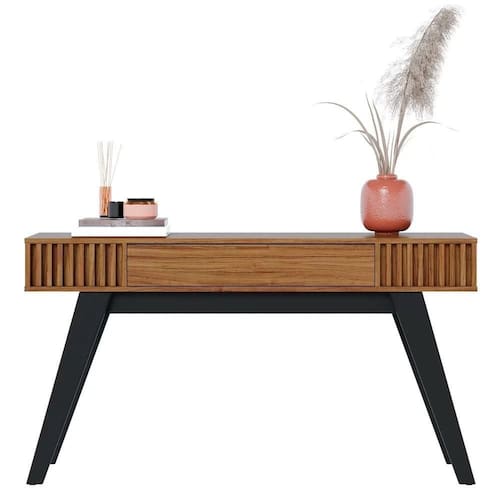 Sim, ele é o item ideal para complementar a decoração e eficiência do cômodo agregando sofisticação e muito charme! E o Aparador Valerie da Mpozenato é a personificação desse conceito! Ele possui pés em madeira maciça remetendo ao queridinho estilo retrô, que somando aos detalhes ripados nas extremidades conferem um design único e aconchegante. Ah, e também é um aparador para sala de estar com gaveta central de puxador dourado e amplo espaço para guardar seus itens, já o tampo pode abrigar objetos decorativos e diversos de sua preferência. Maravilhoso, né? Inclusive, é fabricado em MDP/MDF com acabamento em pintura UV para mais resistência e qualidade.