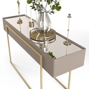 Minimalismo é sobrenome do Aparador Suri, da DJ Móveis. Os pés metálicos até remetem ao estilo industrial, porém a pintura epóxi dourada combinada com a estrutura de MDF e aplicação de espelho no tampo deixa esse aparador para sala de estar com um toque sofisticado e elegante.