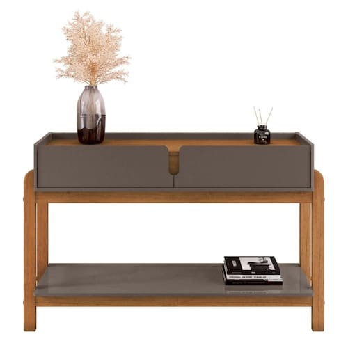 Feito em MDP/MDF. Possui 2 gavetas com corrediças telescópicas e 1 prateleira.