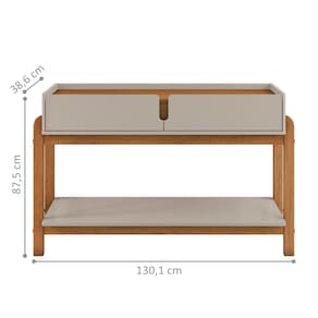 Feito em MDP/MDF. Possui 2 gavetas com corrediças telescópicas e 1 prateleira.