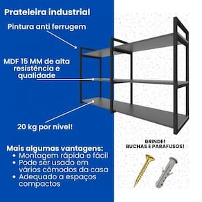 Material resistente: Aço e MdfDesign industrial eleganteAcabamento do aço em PretoSuporta até 20 kg por nivel
