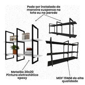 Material resistente: Aço e MdfDesign industrial eleganteAcabamento do aço em PretoSuporta até 20 kg por nivel