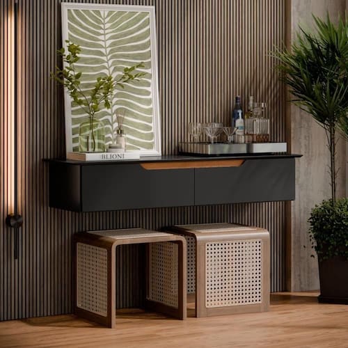 - Versatilidade de Uso: Pode ser utilizado como aparador, buffet, rack suspenso ou organizador de parede, se adaptando a diversos ambientes.