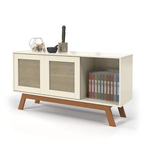 O Aparador Rattan duas portas e a mais nova criacao da Ofertamo, com design moderno e inovador deixando o ambiente de sua casa ainda mais elegante e sofisticado. Ele conta com estrutura 100% MDF e Pes em madeira pinus, proporcionando mais qualidade ao produto. Portas com rattan sintetico, nova tendencia que embeleza ainda mais o seu produto.