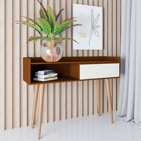 Aparador Retrô Delta Freijó Com Off White - Moveisaqui O Aparador Retrô Delta - MoveisAqui foi pensado para complementar sua sala de estar ou de jantar. Sua gaveta com corrediça telescópica e seu nicho garantem a acomodação de peças decorativas e seus pés inclinados estilo retrô em madeira pinus garante o charme ao móvel. Clássico e charmoso, é a melhor opção para seu ambiente.Dimensões do Produto Montado:Altura: 90 cm;Largura: 109 cm;Profundidade: 38 cm.Observações:- Produzido em MDP;- Gaveta com corrediças telescópicas;- Pés palito, estilo retrô, em madeira pinus;- Pintura ultravioleta com acabamento amadeirado na cor freijó;- Pintura ultravioleta com acabamento brilho na cor off white. Marca: Não Informado