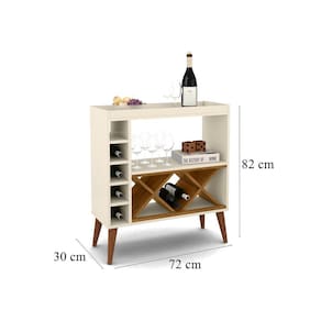 Aparador retrô pés palito com adega soft - off white com freijó - comprar moveis em casa Aparador adega bar estilo retrô, pés palito, é vendida pela comprar móveis em casa que oferece um ambiente sofisticado de alta qualidade e acabamento para seu quarto. procure nossas redes sociais e confira todos nossos produtos e qualidade de atendimento :) Dimensões do produto montadoAltura: 82 cm Largura: 72 cm Profundidade: 30 cmCaracterísticas:Adega para 12 garrafasPés palito em madeiraLocal para taças e bebidasPintura:Produto com pintura ultravioleta, maior resistência e durabilidade, além de proporcionar um acabamento perfeito para o produto.Instruções de uso e manutenção:Limpar apenas com pano levemente umedecido com águaMontagem:Este produto acompanha kit de montagem + manual de instrução detalhando passo a passo de como montar.A montagem do produto é de fácil entendimento, mas não deixamos de ressaltar que a mesma deverá ser feita por um profissional, para que não ocorram danos no produto.Atenção: a montagem não é oferecida pela comprar moveis em casa, a montagem do produto é por conta do comprador.Fotos meramente ilustrativas não acompanham os produtos de decoração.