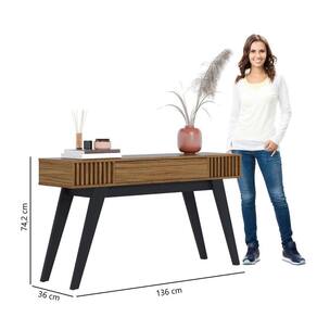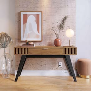 Multifuncional e inspirado no estilo retrô, o Aparador Riviera é uma excelente opção para compor a sala de estar, a sala de jantar, o hall de entrada, ou até mesmo servir como divisor de ambientes, pois a parte traseira possui o mesmo acabamento. O móvel conta com uma gaveta multiuso, pés de madeira maciça, ripas decorativas nas laterais, e um tampo espaçoso que pode ser para decorações, acomodando taças, bebidas e outros objetos.