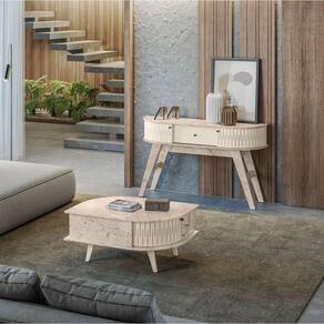 Aparador Sala De Estar Fiorano E Mesa De Centro Narvelli M20 - D'rossi Calacata/off White Renove sua sala com o Conjunto Aparador Fiorano 136cm e Mesa de Centro Narvelli 90cm. Com design moderno e funcional, as peças se destacam pelo acabamento refinado e pela versatilidade. A mesa de centro conta com tampo em MDF com pintura UV e duas portas deslizantes que garantem praticidade e organização, além de pés robustos de 25mm que oferecem estabilidade. Já o aparador Fiorano possui tampo curvo, 1 gaveta com corrediças telescópicas e 2 portas curvas deslizantes, unindo com os pés angulados com inspiração retrô oferecendo maior segurança e um visual marcante. Produzidos em MDP/MDF de alta qualidade, ambos os móveis oferecem durabilidade e resistência. Os puxadores discretos em poliestireno complementam o visual sofisticado. Ideal para ambientes que buscam charme, praticidade e organização com um toque contemporâneo. Dimensões da Mesa de Centro: Altura: 40 cm Largura: 90 cm Profundidade: 60 cm Dimensões do Aparador: Altura: 80 cm Largura: 136 cm Profundidade: 36 cm Peso Total: 35 kg Especificações do Produto: Material da Estrutura: MDP/MDF Espessura das Chapas: 15mm/25mm Acabamento: Pintura UV Escala de Brilho: Brilho/Fosco Peso suportado do Aparador: 25 kg distribuídos Peso suportado da Mesa de Centro: 20 kg distribuídos Possui Prateleiras: Não Possui Gavetas: Sim Quantidade de Gavetas: 1 Possui Nichos: Não Possui Portas: Sim Quantidade de Portas: 4 Tipo de Porta: Deslizante Tipo de Corrediças: Telescópicas Possui Puxador: Sim Material do Puxador: Poliestireno Possui Espelho: Não Possui LED: Não Possui Pés: Sim Material dos Pés MDP Quantidade de Pés: 8 Pés Diferenciais: Design moderno;Tampo detalhes curvos; Portas deslizantes flexíveis em MDF Sistema de Montagem: Cavilhas/Parafusos/Minifix Manual de Montagem: Sim Complexidade da Montagem: Alta Montagem: Recomendamos que seja feita por um profissional Garantia: 90 dias contra defeito de fabricação Instruções de Limpeza: Utilizar um pano limpo e levemente úmido Quantidade de Volumes: 2 Caixas Medida das Embalagens Mesa de Centro: Caixa 1: 94,5x64,5x9,7cm Medida das Embalagens Aparador: Caixa 1: 140,3x37,9x11cm Entrega: É feita somente até o térreo ou portaria. Confira sempre as medidas das embalagens para assegurar que o produto passe por portas e escadas do local.