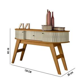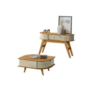Aparador Sala De Estar Fiorano E Mesa De Centro Narvelli M20 - D'rossi Cumaru(fosco)/opala(brilho) Renove sua sala com o Conjunto Aparador Fiorano 136cm e Mesa de Centro Narvelli 90cm. Com design moderno e funcional, as peças se destacam pelo acabamento refinado e pela versatilidade. A mesa de centro conta com tampo em MDF com pintura UV e duas portas deslizantes que garantem praticidade e organização, além de pés robustos de 25mm que oferecem estabilidade. Já o aparador Fiorano possui tampo curvo, 1 gaveta com corrediças telescópicas e 2 portas curvas deslizantes, unindo com os pés angulados com inspiração retrô oferecendo maior segurança e um visual marcante. Produzidos em MDP/MDF de alta qualidade, ambos os móveis oferecem durabilidade e resistência. Os puxadores discretos em poliestireno complementam o visual sofisticado. Ideal para ambientes que buscam charme, praticidade e organização com um toque contemporâneo. Dimensões da Mesa de Centro: Altura: 40 cm Largura: 90 cm Profundidade: 60 cm Dimensões do Aparador: Altura: 80 cm Largura: 136 cm Profundidade: 36 cm Peso Total: 35 kg Especificações do Produto: Material da Estrutura: MDP/MDF Espessura das Chapas: 15mm/25mm Acabamento: Pintura UV Escala de Brilho: Brilho/Fosco Peso suportado do Aparador: 25 kg distribuídos Peso suportado da Mesa de Centro: 20 kg distribuídos Possui Prateleiras: Não Possui Gavetas: Sim Quantidade de Gavetas: 1 Possui Nichos: Não Possui Portas: Sim Quantidade de Portas: 4 Tipo de Porta: Deslizante Tipo de Corrediças: Telescópicas Possui Puxador: Sim Material do Puxador: Poliestireno Possui Espelho: Não Possui LED: Não Possui Pés: Sim Material dos Pés MDP Quantidade de Pés: 8 Pés Diferenciais: Design moderno;Tampo detalhes curvos; Portas deslizantes flexíveis em MDF Sistema de Montagem: Cavilhas/Parafusos/Minifix Manual de Montagem: Sim Complexidade da Montagem: Alta Montagem: Recomendamos que seja feita por um profissional Garantia: 90 dias contra defeito de fabricação Instruções de Limpeza: Utilizar um pano limpo e levemente úmido Quantidade de Volumes: 2 Caixas Medida das Embalagens Mesa de Centro: Caixa 1: 94,5x64,5x9,7cm Medida das Embalagens Aparador: Caixa 1: 140,3x37,9x11cm Entrega: É feita somente até o térreo ou portaria. Confira sempre as medidas das embalagens para assegurar que o produto passe por portas e escadas do local.