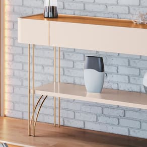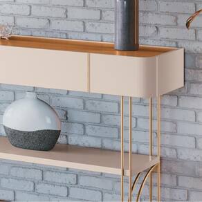 O Aparador Sala de Estar Vivant personifica requinte e sofisticação em peças contemporâneas, destacando-se pela valorização das formas orgânicas e cantos arredondados. Seu design versátil inclui uma prateleira inferior de 25mm, perfeita tanto para complementar a decoração quanto para funcionar como um elegante divisor de ambientes. As laterais apresentam delicados filetes decorativos, adicionando um toque de charme. A estrutura do aparador é sustentada por pés de aço maciço 3/8, proporcionando estabilidade e elegância, com um requintado acabamento em tom dourado. Fabricado em MDP e MDF de 15mm, o Aparador Vivant é mais do que um simples móvel, é uma expressão de estilo e bom gosto para elevar o ambiente da sala de estar a um patamar de elegância contemporânea.