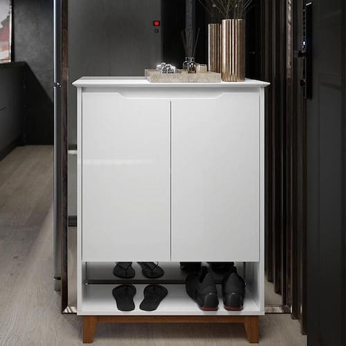 Fabricante: EJ Móveis | Altura do Produto Montado: 90,5 | Largura do Produto Montado: 68 | Comprimento do Produto Montado: 26,5 | Altura do Produto Embalado: 7,5 | Largura do Produto Embalado: 59,5 | Comprimento do Produto Embalado: 82,5 | Peso do Produto Montado: 16,4 | Peso do Produto Embalado: 16,4 | Material para Filtro: MDF/MDP | Estado de Origem: SP | Descrição do Tamanho: 90,5 x 68 x 26,5 cm | Nome do Produto: Aparador Sapateira Flow 2 Portas | Garantia em Meses: 03 meses de garantia para defeitos de fabricação | Capacidade de Pares: 9 Cor: Branco/Freijo