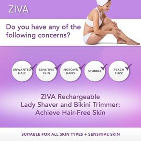 - Ferramenta de barbear – O barbeador feminino ZIVA pode ser utilizado molhado ou seco, dando a você uma pele lisa mesmo no banho ou chuveiro.