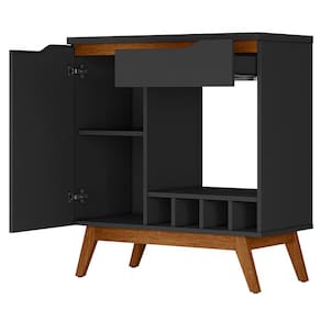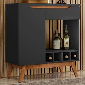 O(a) Aparador Tóquio com Adega 1 Porta 1 Gaveta Preto 17177 - Olivar Móveis é produzido em MDP na escala de brilho Semi-Brilho, e possui um grau de dificuldade de montagem: Médio.