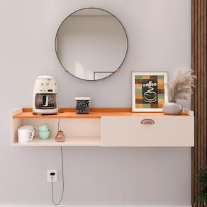 O Aparador Suspenso Classic une praticidade e estilo, sendo a escolha perfeita para otimizar ambientes compactos. Seu design minimalista apresenta um nicho e uma porta discreta, ideais para organizar pequenos objetos ou exibir itens decorativos com sofisticação. Versátil e funcional, é adequado para salas, cozinhas ou áreas de café, contribuindo para um espaço organizado e elegante.