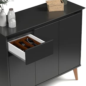 Aparador Veneza Preto O Aparador Buffet Veneza é a união perfeita entre sofisticação, praticidade e design contemporâneo. Ideal para compor salas de jantar, estar ou espaços sociais, ele oferece um visual limpo e funcional, com excelente aproveitamento interno.Com tampo em MDF usinado e estrutura firme com pés em madeira, o móvel traz um acabamento refinado que valoriza cada detalhe do ambiente. O design minimalista dispensa puxadores externos, garantindo uma estética moderna e elegante.Internamente, o aparador oferece amplo espaço para guardar objetos, utensílios e itens do dia a dia, com a praticidade de corrediças metálicas que proporcionam maior suavidade e durabilidade na abertura das portas.Dimensões:Altura: 83 cmLargura: 93 cmProfundidade: 35 cmObservações:- Sem puxadores externos: visual clean e contemporâneo- Tampo em MDF usinado com acabamento de alto padrão- Pés em madeira: estabilidade e toque natural- Corrediça metálica: abertura suave e resistente- Amplo espaço interno para organização eficiente