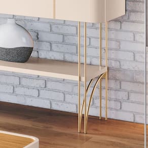 - Pés em aço maciço 3/8 com acabamento dourado