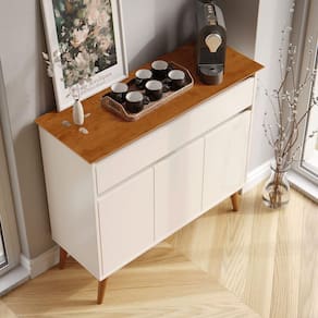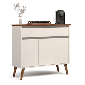 Aparador Zeus Off White Com Freijo Com design contemporâneo e elegante, o Aparador Zeus é ideal para quem busca unir estética e funcionalidade na decoração.Na parte superior, o tampo em MDF usinado oferece acabamento refinado e visual marcante.Na parte inferior, o aparador conta com amplo espaço interno, perfeito para armazenar objetos diversos de forma prática e organizada.O modelo possui corrediças metálicas, que proporcionam abertura suave e segura, além de maior durabilidade.Outro diferencial está no design sem puxadores externos, que traz um estilo minimalista e discreto.A estrutura dos pés em madeira confere estabilidade e resistência, completando o conjunto com charme e funcionalidade.Dimensões:Altura: 83 cmLargura: 93 cmProfundidade: 35 cmObservações:- Sem puxadores externos, com visual clean e elegante- Tampo em MDF usinado, com acabamento refinado- Estrutura dos pés em madeira, com excelente resistência- Corrediças metálicas para maior durabilidade e funcionalidade- Amplo espaço interno para armazenar objetos diversos