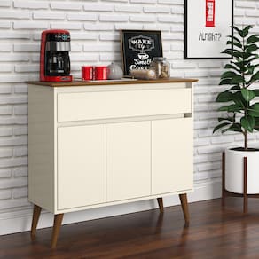 APARADOR ZEUS 1 GAVETA 3 PORTAS PÉS MADEIRA MACIÇA PALITO OFF WHITE / FREIJÓ