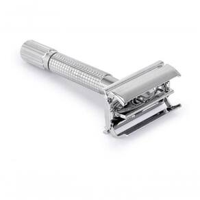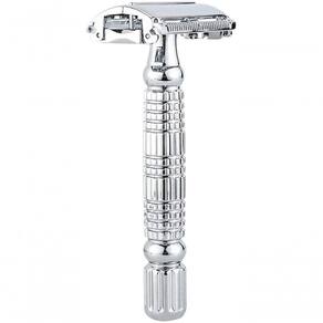 Aparelho de barbear clássico retro vintage com abertura tipo borboleta para colocar a lâmina gilete