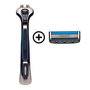 Após anos de pesquisa, a Dr. JONES apresenta o melhor aparelho de barbear: THE RAZOR. Com tecnologia de ponta da recarga ao cabo, você vai finalmente conhecer o que é um barbear rente, seguro e confortável. Formato ergonômico que se adapta melhor ao formato natural da mão e facilita o manuseio; Mais pesado = mais segurança no uso. Previne que o aparelho escape das mãos no uso, causando cortes; Em metal, não cria rachaduras e quebras caso o aparelho caia; Detalhes em borracha evitam que o aparelho deslize das mãos durante o uso. Cabo compatível com recargas The Razor6 e The Razor4.