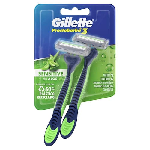 A Gillette Prestobarba3 Lâmina descartável sensível para pele sensível, agora oferece mais 10 barbeamentos com sua nova tecnologia comfortgel. Durante o barbear a água ativa o lubrificante, é esticada transformando-se em uma camada protetora entre a pele e as lâminas para um barbear liso e flush. Para um melhor barbear, experimente a Espuma de Barbear Sensível Prestobarba. Até 10 barbas mais suaves; Tecnologia Comfortgel para um barbear suave e flush; Com mais lubrificação, ideal para peles sensíveis; Três lâminas (3) montadas em molas independentes e uma cabeça móvel que se ajusta ao contorno do seu rosto para obter um barbear suave; Cabo antiderrapante para um ótimo controle; Fácil de enxaguar.
