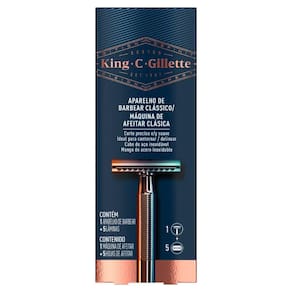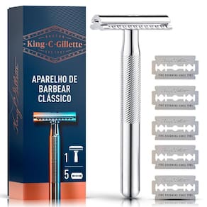 O Aparelho de Barbear Clássico de Aço Inoxidável King C. Gillette com seu cabo cromado de alta qualidade e lâminas de barbear revestidas de platino proporciona precisão ao delinear sua barba e a melhor tecnologia para uma maior duração do aparelho. OS CLÁSSICOS NÃO SAEM DE MODA: com seu aparelho de barbear clássico, cromado de alta qualidade e lâminas de barbear revestidas de platina, consegue precisão ao delinear sua barba e a melhor tecnologia para uma maior duração do aparelho BARBEAR MAIS CONFORTÁVEL: oferece um corte preciso e suave. CABO PREMIUM: o cabo de aço inoxidável cromado oferece maior controle e precisão ao delinear sua barba. Com revestimento antifricção para obter um barbear mais confortável. CONTÉM: um aparelho de barbear clássico King C. Gillette e 5 lâminas de barbear duplo fio com platina. MELHOR EXPERIÊNCIA: com a nova linha de produtos para o cuidado da barba de King C. Gillette, sinta o melhor da sua barba
