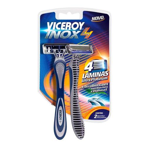 O Aparelho De Barbear Viceroy Inox 4 proporciona um excelente barbear, corte rente a raiz, eliminando todos os pelos indesejados sem causar irritações na pele. Um aparelho revolucionário com nova tecnologia de 4 lâminas proporciona um barbear suave e preciso mesmo para barbas mais difíceis. Desenvolvido com material de qualidade com quatro lâminas afiadas, fita lubrificante com Aloe Vera e Vitamina E removem os pelos de forma suave cuidando da pele.