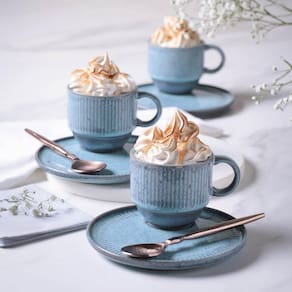 Garantia: 90 dias / Peso total: 9,768Kg / Cor predominante: preto e azul / Ref: 7794464255146 Dimensões de cada prato raso: 26,5cm (D) x 3cm (A); Dimensões de cada prato de sobremesa: 19cm (D) x 2cm (A); Dimensões de cada xícara: 8cm (D) x 7,5cm (A); Capacidade de cada xícara: 230ml; Dimensões de cada pires: 15,5cm (D) x 1,5cm (A); Conteúdo: 6 pratos rasos, 6 pratos de sobremesa, 6 xícaras e 6 pires; Material: - Cerâmica Stoneware (grés), de alta resistência que passa por queima especial e acabamento manual, garantindo durabilidade e um visual exclusivo em cada item; - Esmalte reagente: cobertura vítrea aplicada a cerâmicas, que reage quimicamente durante a queima no forno, criando efeitos únicos de cor, textura ou acabamento. É papel importante na identidade do produto; Limpeza e cuidados: - Não expor o produto diretamente ao fogo ou a fontes de calor intensas; - Para limpeza profunda, use uma esponja multiuso e saponáceo; - Pode ir ao forno, micro-ondas, lava louças e freezer; - Suporta até 180C, não expor a troca de calor direta; - Não utilizar produtos químicos e abrasivos.