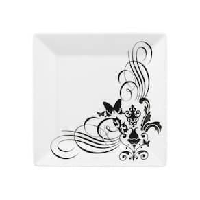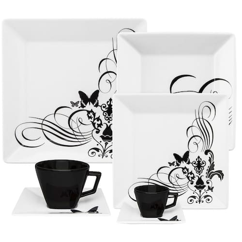 O Aparelho de Jantar 20 Peças Quartier Tattoo Oxford aposta em uma ilustração alegre e atual: flores, borboletas e traços geralmente utilizados em desenhos de tatuagens. Tudo isso marcado pela dupla mais famosa de todos os tempos: preto com branco. Características que deixam essa louça ainda mais moderna e irreverente!
