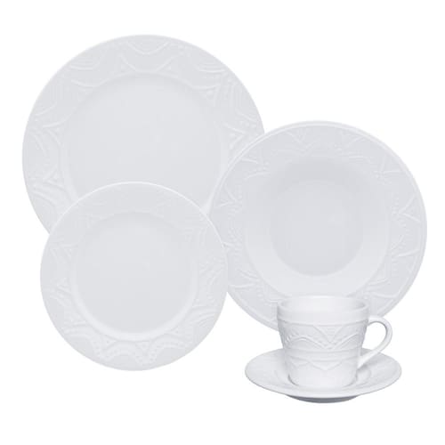 Detalhes em relevo continuam em alta no mundo das louças. A Oxford, de olho nesta tendência, leva para sua mesa esse belíssimo Aparelho de Jantar de 30 peças para servir até 6 pessoas.