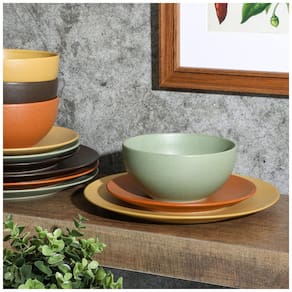 CONTEÚDO DA CAIXA: Serviço para 4 pessoas que inclui 4 de cada um dos seguintes: Pratos de Jantar de 25 centímetros, Pratos de Sobremesa de 20 centímetros e Tigelas de Cereais de 16 centímetros INSTRUÇÕES DE CUIDADOS: pratos lindos que também podem ser lavados na lava louças e micro ondas Grés, Vidrado reativo: reativo refere se a uma técnica como dentro do esmalte reagem juntas para criar uma qualidade onírica e vibrante para as cores e matizes. Como resultado da natureza reativa do esmalte, cada peça de grés é única. A alta temperatura de queima, construção espessa e mistura de argilas totalmente naturais tornam o grés um material incrivelmente durável SOBRE A MARCA: A Gibson é uma produtora líder do setor de produtos de mesa e utilidades domésticas com sede em Los Angeles, Califórnia. Propriedade familiar há mais de 40 anos, desenvolvemos uma família de marcas que prosperam com o compromisso incansável com estilo, inovação e valor para nossos consumidores em todo o mundo GIBSON ELITE: a principal marca de esmalte reativo, cerâmica pintada à mão e louça branca, a Gibson Elite traz o artesanato artesanal para o dia a dia Marca: Não Informado