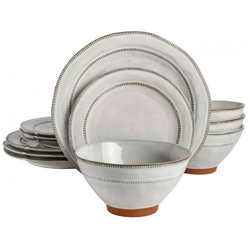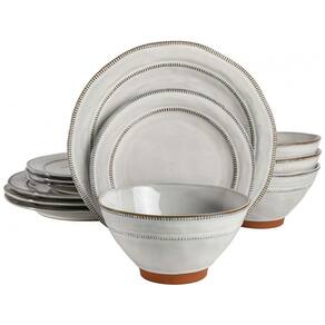 Aparelho de Jantar com 12 Peças em Cerâmica e Esmalte Reativo, Gibson Elite Terranea, Branco