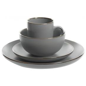 Aparelho de Jantar com 16 Peças em Cerâmica Stoneware Serve 4 Pessoas, Gibson Home Rockaway, Cinza