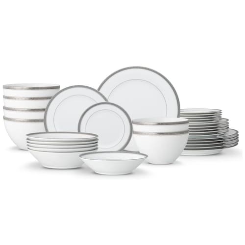 Perfeito para todas as ocasiões, o Noritake Charlotta Platinum é ideal para servir comida em eventos especiais, unindo funcionalidade e beleza em cada refeição.