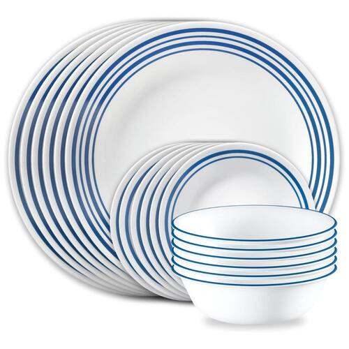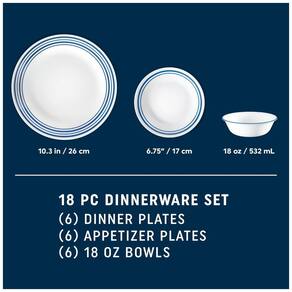 Traga estilo atemporal e clássico para sua experiência gastronômica com este conjunto de jantar Corelle. Composto por 18 peças, incluindo seis pratos rasos , seis pratos de sobremesa e seis tigelas de sopa/cereal.Com um design elegante em azul clássico, este conjunto é funcional, resistente a quebras, leve e empilhável. Seguro para lava-louças, pode ser utilizado no micro-ondas e forno. Um conjunto completo e de baixa manutenção para 6 pessoas, que traz o estilo clássico da Corelle para sua mesa.