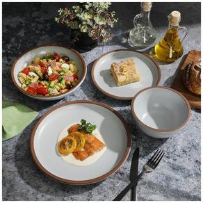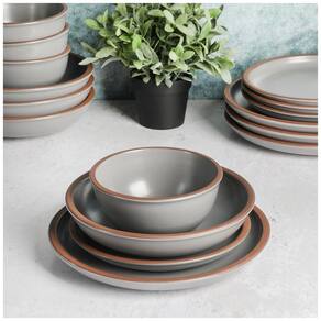 Informação do produto Material Terracota Marca Gibson Elite Nome da coleção Lagos Ocasião tigela de jantar Tipo de acabamento Fosco Instruções de cuidados com o produto Máquina de lavar louça segura Forma Redonda É para máquinas de lavar louça Sim É micro ondas Sim Número de peças 16 Marca: Não Informado