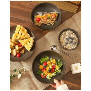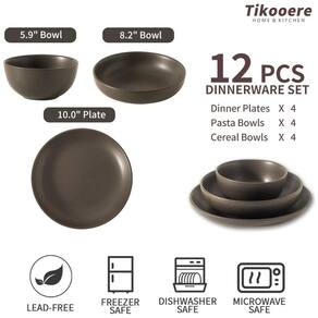 O Conjunto de Louças Tikooere para 4 Pessoas inclui 4 pratos de jantar, 4 tigelas de massa e 4 tigelas de sopa. Projetado para o dia a dia, este conjunto versátil é perfeito para desfrutar de saladas, massas, sopas, sobremesas e muito mais com amigos e família. Ideal tanto para refeições casuais quanto para jantares especiais em família, este conjunto combina perfeitamente funcionalidade e elegância. Experimente o charme distinto do acabamento fosco preto da Louça Tikooere, que adiciona sofisticação à mesa. Este acabamento elegante não só melhora o apelo visual, mas também oferece uma textura antiderrapante, tornando cada peça funcional e elegante para a sua coleção de jantar. As louças e tigelas de cerâmica Tikooere são feitas de grés denso e não poroso, oferecendo durabilidade excepcional. Aproveite uma distribuição de calor superior, mantendo suas refeições quentes e deliciosas por mais tempo. Este material de alta qualidade garante uma experiência de jantar confiável, ideal para uso diário. Otimize o espaço da sua cozinha com os conjuntos de jantar de cerâmica Tikooere, projetados para ser empilháveis e ocupar pouco espaço no armário. O design liso e esmaltado no interior garante empilhamento fácil sem riscos, mantendo a condição impecável de cada peça. Coordenando perfeitamente com outras louças, esses conjuntos também servem como peças decorativas elegantes. Enriqueça qualquer cozinha com os conjuntos de louças Tikooere, onde funcionalidade encontra elegância. Ideal para uso diário ou como um presente sofisticado, este conjunto emana estilo e bom gosto. Perfeito para Natal, Ação de Graças, aniversários, inaugurações, casamentos, encontros e feriados, é uma escolha chique e prática para qualquer ocasião.