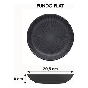 Os pratos da linha Flat possuem uma área maior de uso, sendo uma opção adequada para empratamentos criativos e proporcionam mais conforto no uso. Com formas retas e funcionais, as peças são fáceis de armazenar em armários compactos. A decoração Ônix tem acabamento acetinado na cor preta, semelhante à pedra que inspira a decoração. Linhas em alto relevo partem do centro dos pratos até as extremidades, simbolizando as ramificações presentes na pedra conhecida pela proteção e pelo afastamento de energias adversas.