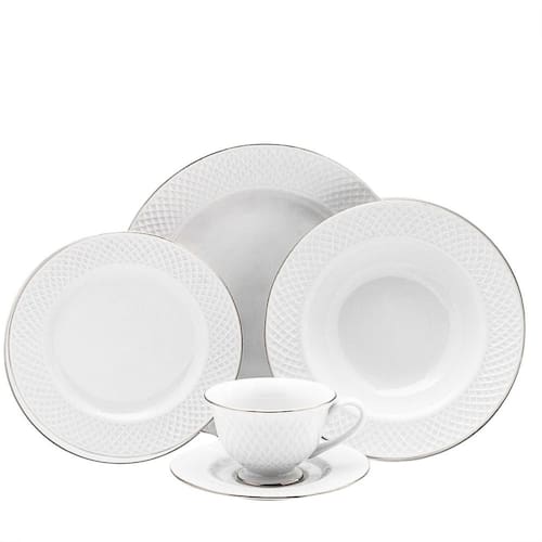 Aparelho de Jantar e Chá 30pç Porcelana Joaquina Filete Prata