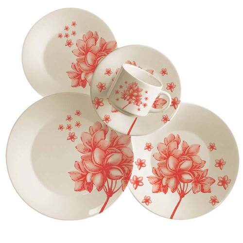 As flores são indispensáveis para uma mesa bem arrumada com carinho e dedicação. Aparelho de Jantar e Chá Biona Yasmin - 20 peças encanta por sua beleza e é decorado com uma flor considerada como purificadora do ambiente. Sua cor rosa aconchega o lar com ternura e deixa o ambiente muito mais charmoso. Peças feitas em cerâmica , que podem ir ao microondas e servem até quatro pessoas.