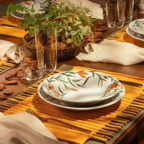 Conjunto Completo : Inclui 6 pratos rasos, 6 pratos fundos, 6 pratos de sobremesa, 6 xícaras de chá e 6 pires, atendendo a mesa de até 4 pessoas.