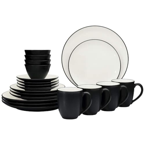 O conjunto inclui: 4 canecas, 4 pratos de jantar, 4 pratos de sobremesa, 4 mini Bowls e 4 mini pratos.