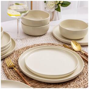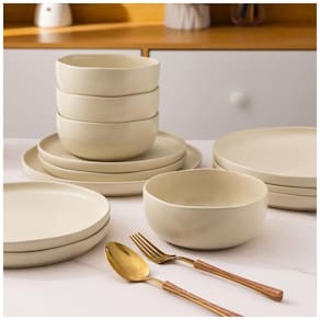 DESIGN ELEGANTE COM BORDAS ONDULADAS: Nossos pratos, desenhados por artistas profissionais, apresentam uma borda ondulada única e um acabamento fosco reativo e claro. Cada peça é lindamente individual, podendo variar sutilmente de tonalidade, adicionando sofisticação à sua mesa. Perfeito tanto para uso diário quanto para ocasiões especiais. CONJUNTO DE JANTAR LIVRE DE grafite E SEGURO: Ao contrário de outras cerâmicas, nosso conjunto de pratos e tigelas é livre de grafite e feito de material de alta qualidade com esmalte totalmente natural. Foram queimados a uma alta temperatura de 2340°C por 13 horas, tornando-os livres de cádmio. Você pode usá-los sem se preocupar com problemas de saúde. RESISTÊNCIA E DURABILIDADE: Nosso conjunto de pratos e tigelas é resistente a lascados e mais robusto devido à queima de 13 horas a 2340°C. O esmalte é extra forte para evitar arranhões de facas e garfos, garantindo que eles permaneçam com aparência de novos mesmo após anos de uso. FORMATO VERSÁTIL: O design moderno e minimalista do conjunto de jantar com bordas onduladas cria uma mesa elegante e sofisticada. Os pratos e tigelas são fáceis de manusear, empilhar e se encaixam perfeitamente em seu armário ou prateleiras. São seguros para micro-ondas, lava-louças, forno e freezer, perfeitos para uso diário, dentro ou fora de casa. O QUE ESTÁ INCLUSO: O conjunto de 12 peças inclui 4 pratos de jantar, 4 pratos de aperitivo/lanches/salada e 4 tigelas de sopa/cereal.